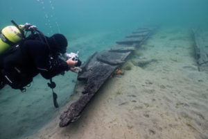 Situées à faible profondeur et protégées par une fine couche de sédiments, les trois épaves sont aujourd’hui vulnérables, car elles sont situées dans une partie du lac particulièrement exposée aux vents dominants.