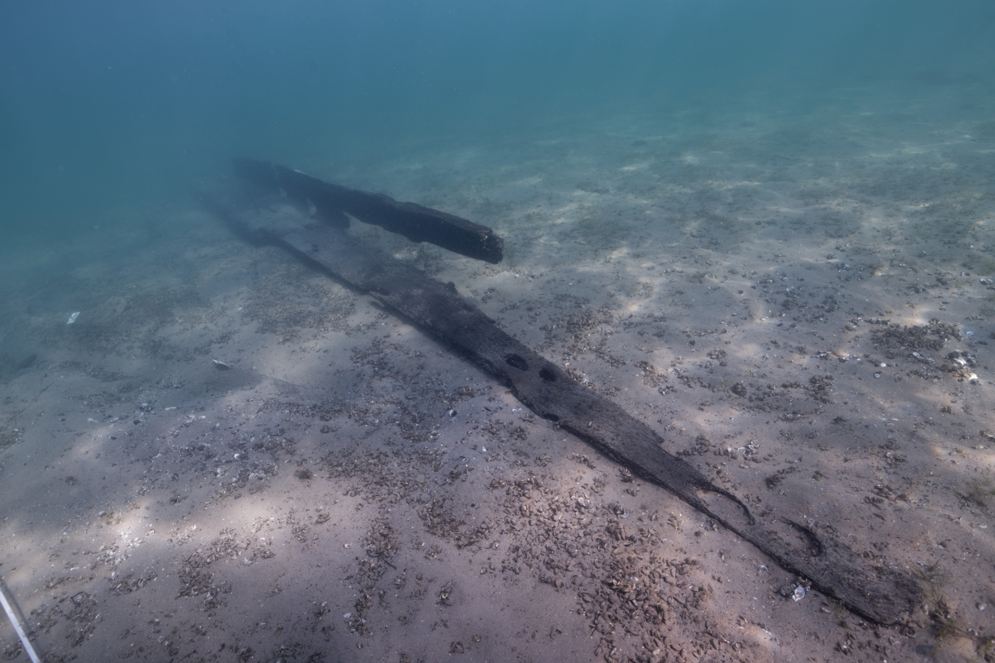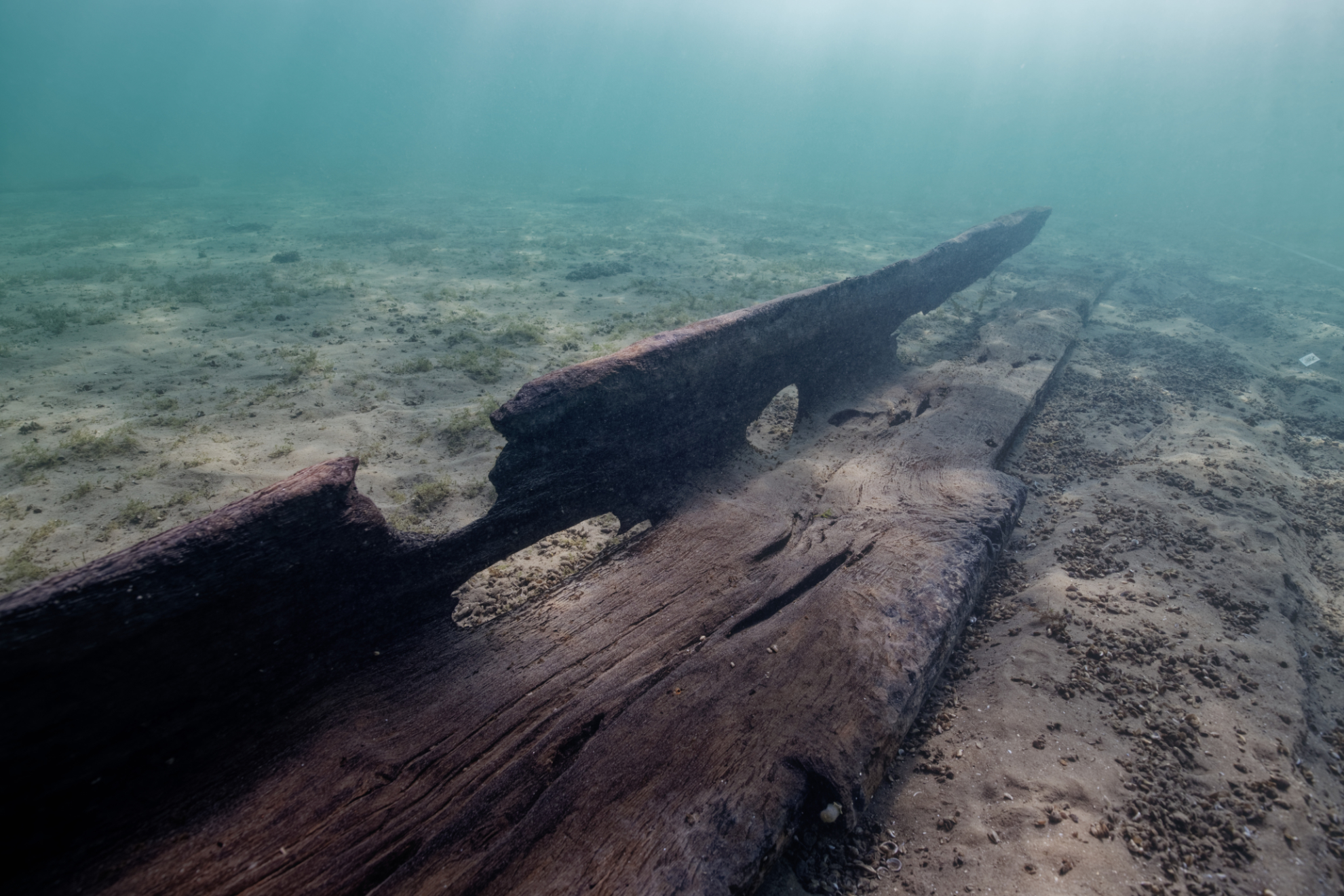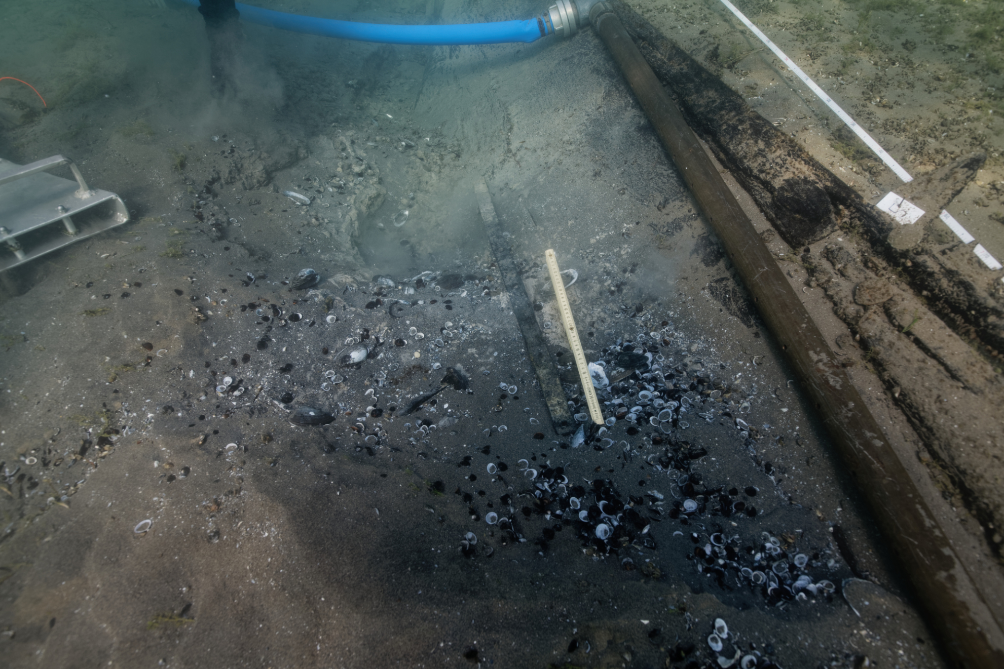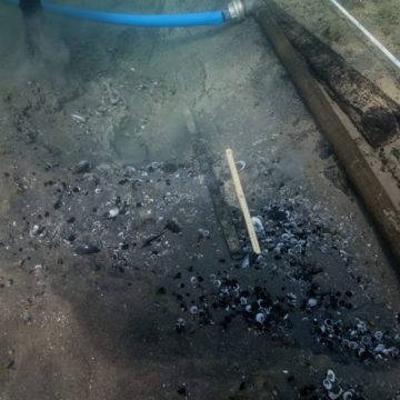 Après les deux premières épaves étudiées en 2019 (mars et octobre), cette troisième mission de soutien sur le terrain avait pour but de dégager, documenter et ré-ensabler les restes de l’épave d’un chaland à fond plat, daté par dendrochronologie en 121 après J-C, soit l’époque gallo-romaine.