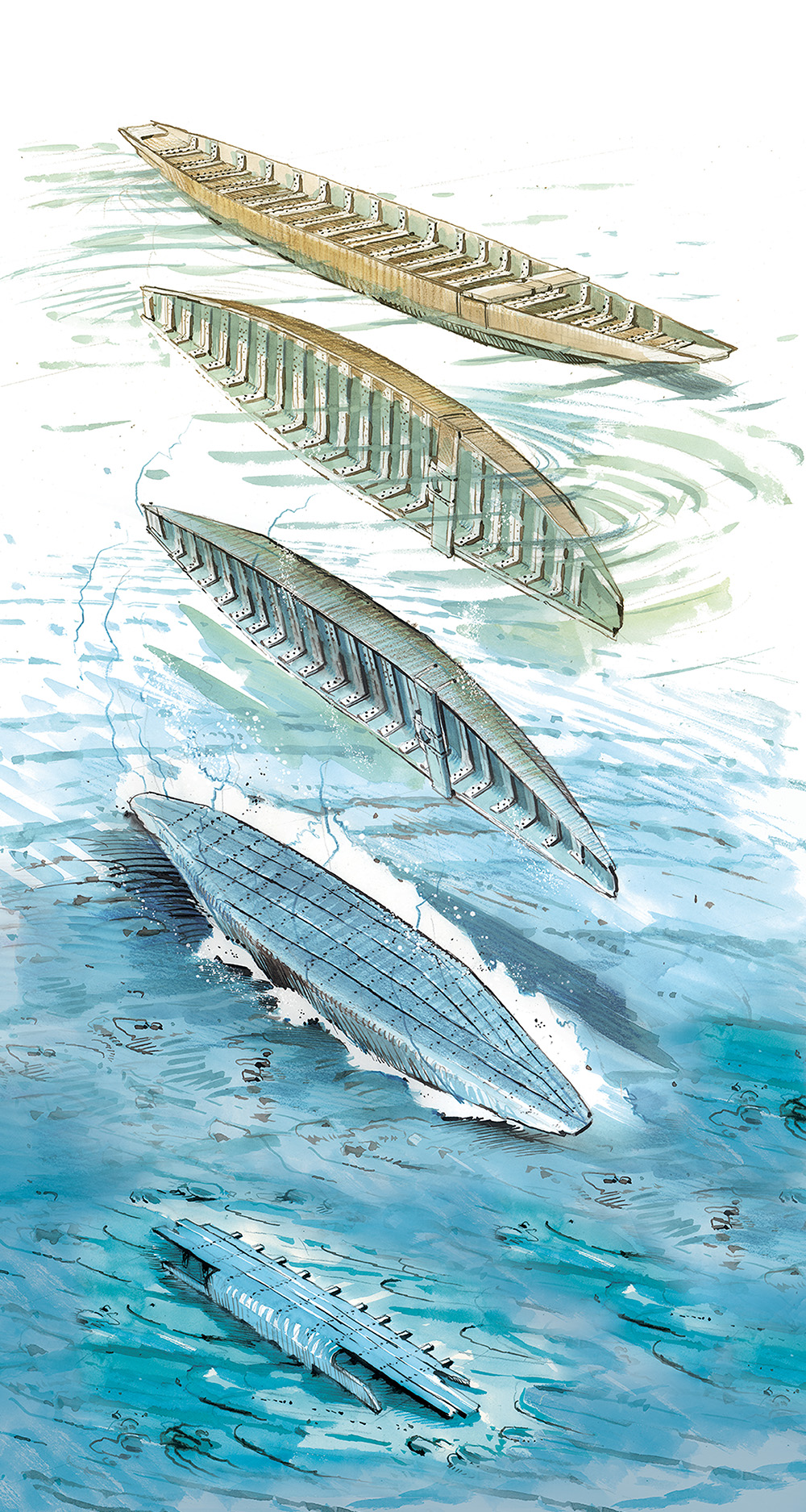 Durant les milliers d’années qui ont suivi, les hommes ont utilisé les lacs suisses comme des axes commerciaux. Une aide précieuse pour transporter des marchandises trop volumineuses ou trop lourdes pour les difficiles voies terrestres, comme des blocs de pierre par exemple. Que ce soit durant l’époque gallo-romaine, le Moyen Âge, ou les périodes tardives, nombreux sont les navires qui n’ont pas atteint leur destination et ont sombré, rapidement oubliés.