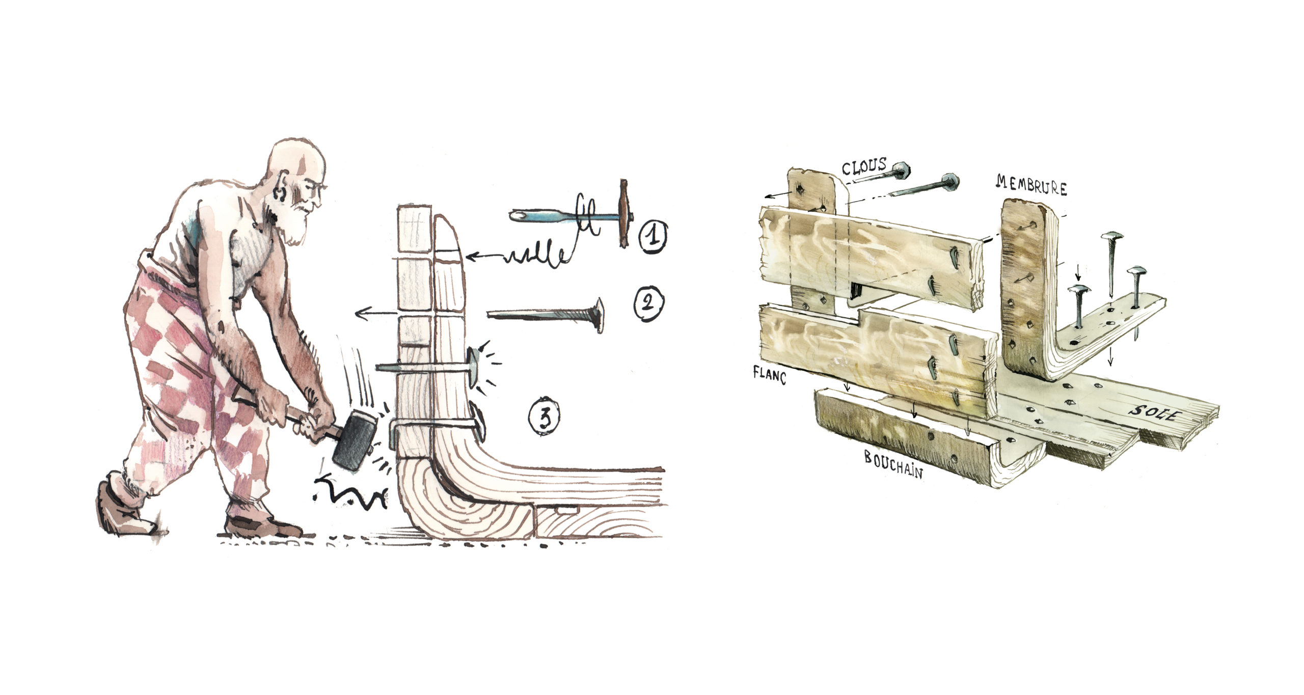 Lors de la première plongée, l’identification d’un chaland gallo-romain n’a fait aucun doute. Fabien Langenegger a découvert un assemblage de planches en chêne apparaissant légèrement au sommet des sédiments lacustres et, sur toute sa longueur, un bordé fixé à l’aide de gros clous forgés sur les courbes (en chêne également) espacées tous les 80 à 90 cm.